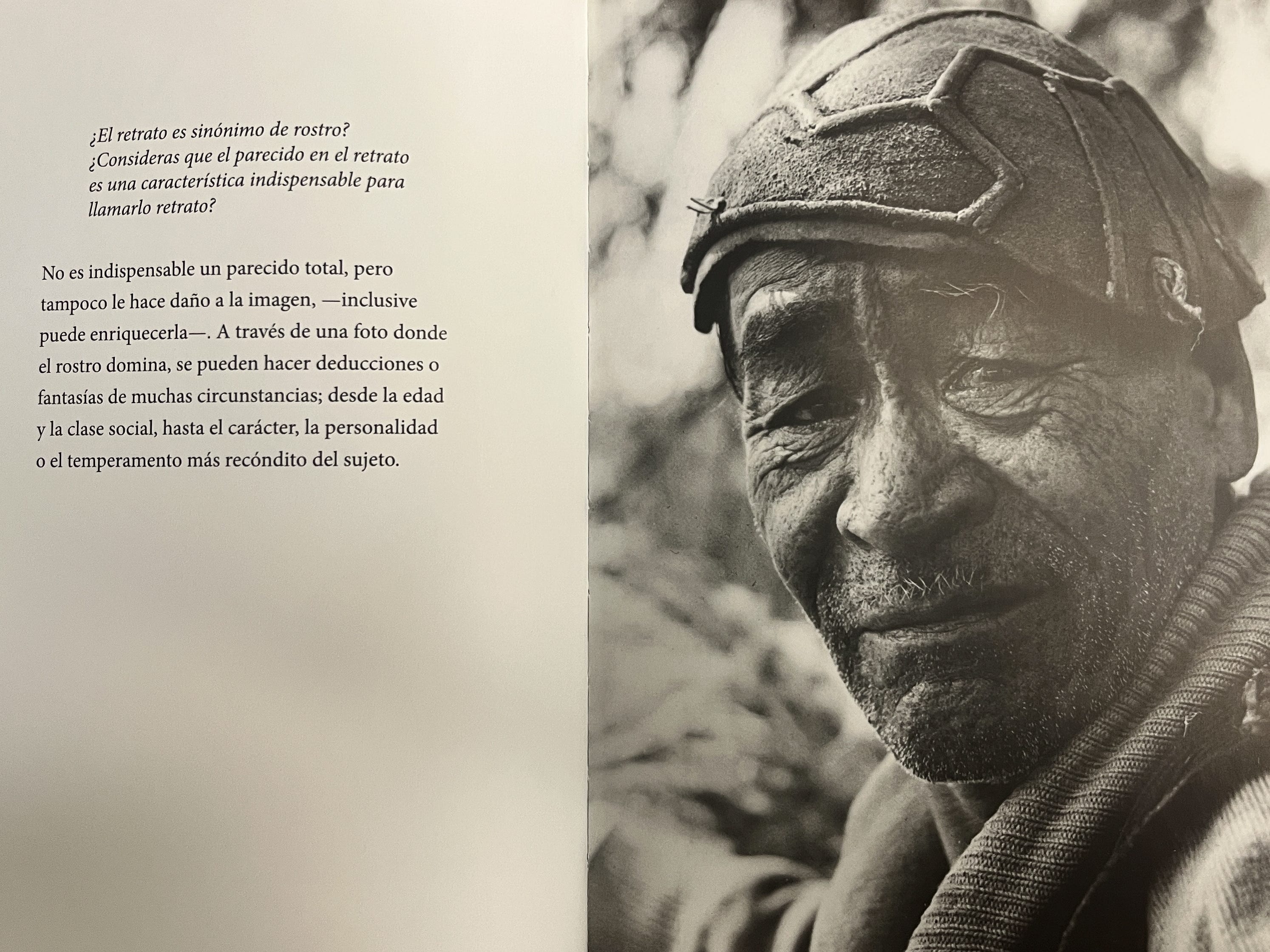 “¿El retrato es sinónimo de rostro?” — No es indispensable un parecido total, pero tampoco le hace daño a la imagen. A través de una foto donde el rostro domina, se pueden hacer deducciones o fantasías de muchas circunstancias; desde la edad y la clase social, hasta el carácter, la personalidad o el temperamento más recóndito del sujeto.” (p. 89)