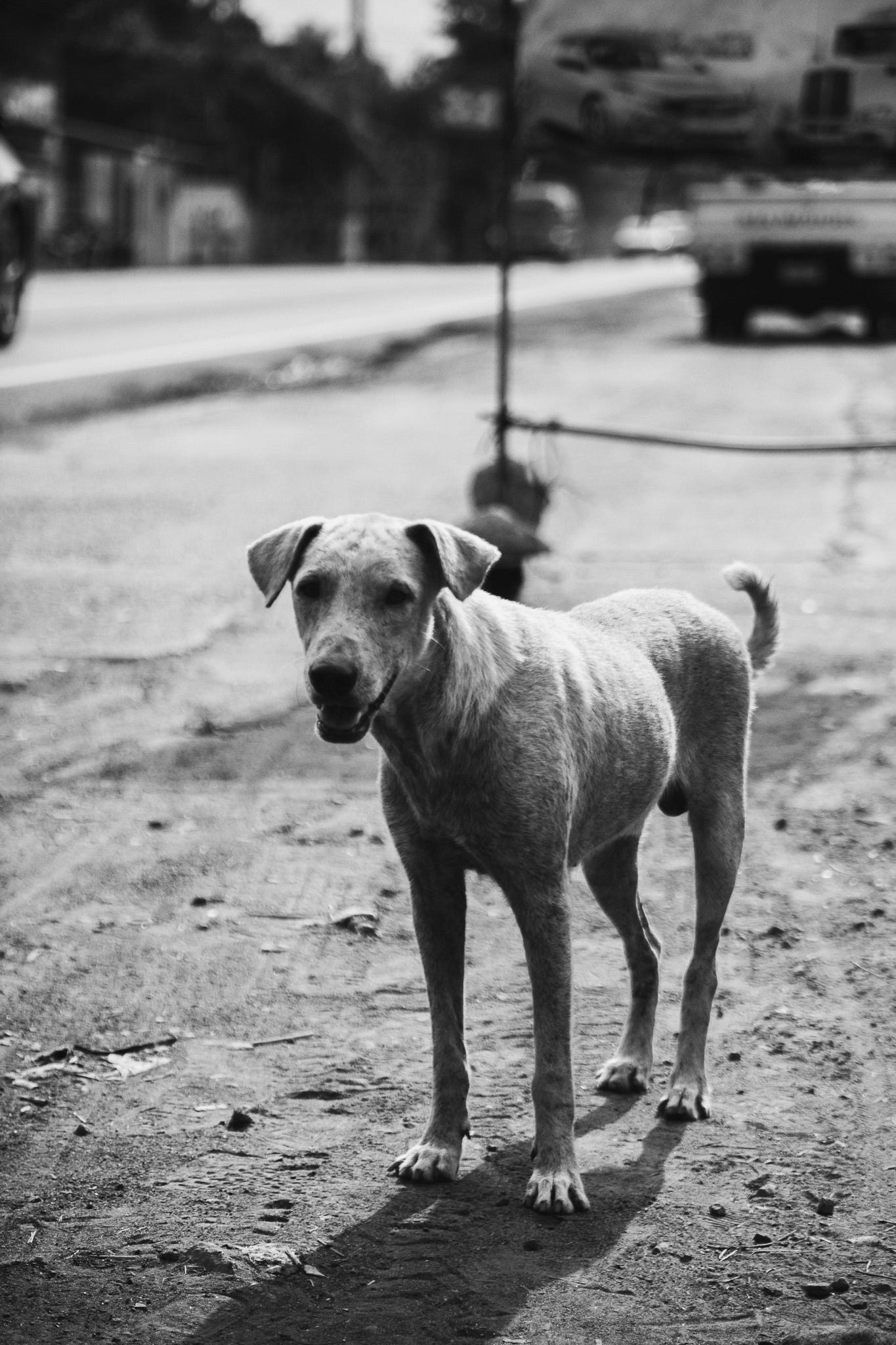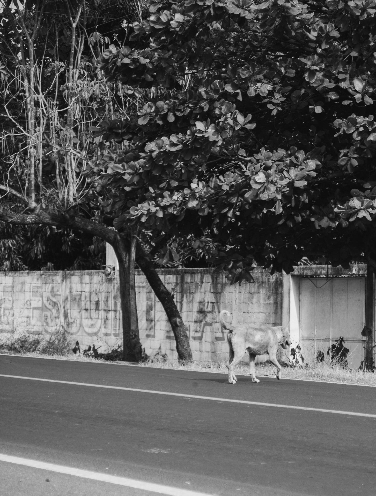 Canelo es la muestra de la vida de los perros callejeros en la zona costera del país. Problemas de la piel, hambre y sed.
