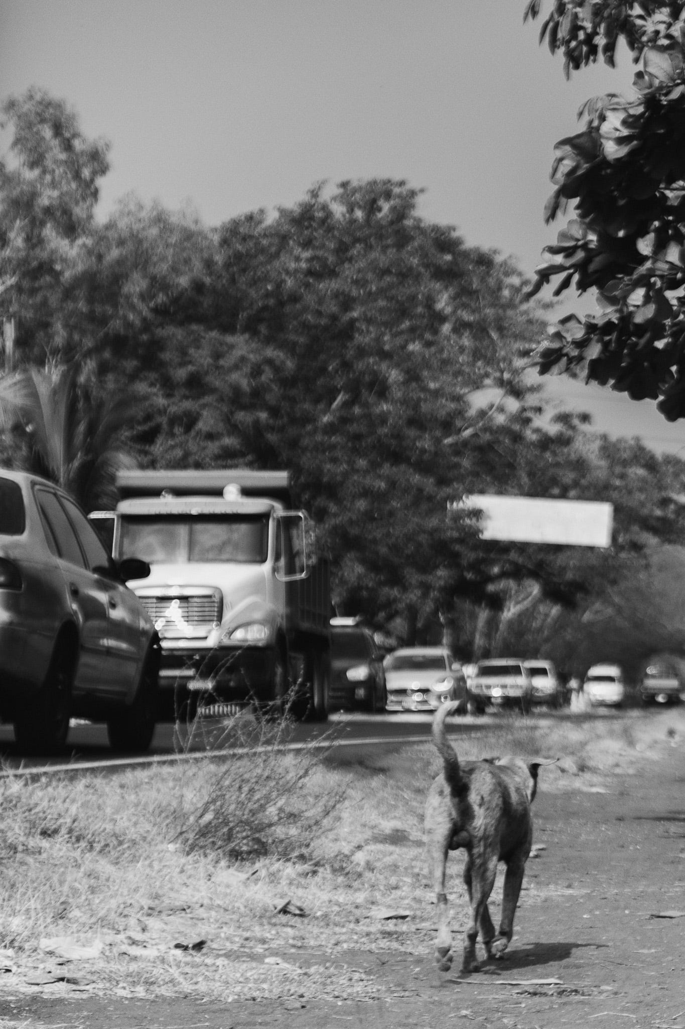 Después del hambre y sed, su principal problema es la calle. Al vivir (o sobrevivir) a un lado de la carretera principal, sus búsquedas de comida tienen altas probabilidades de llevarlo, como a muchos otros, a un accidente fatal.